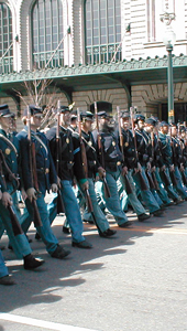 We customarily meet on the third Sunday of each month for a drill and a meeting. The drill is always at 2 p.m.; the meeting is at 3 p.m. Meetings usually last about an hour.